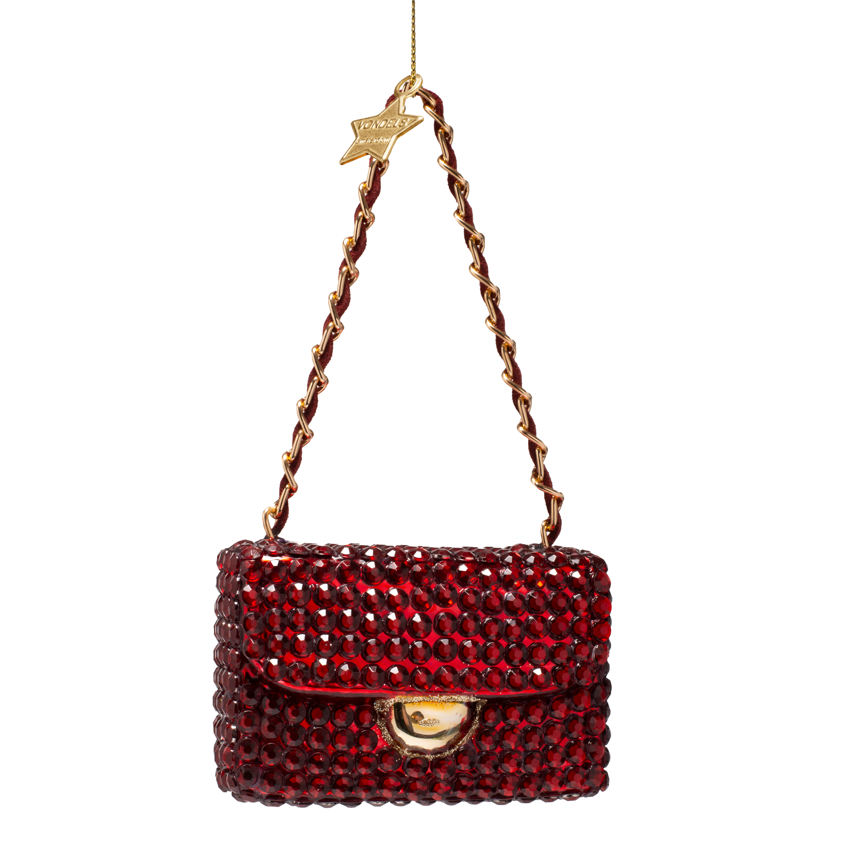 Ornament glass burgundy fashion bag w/diamond allover H5.5cm
