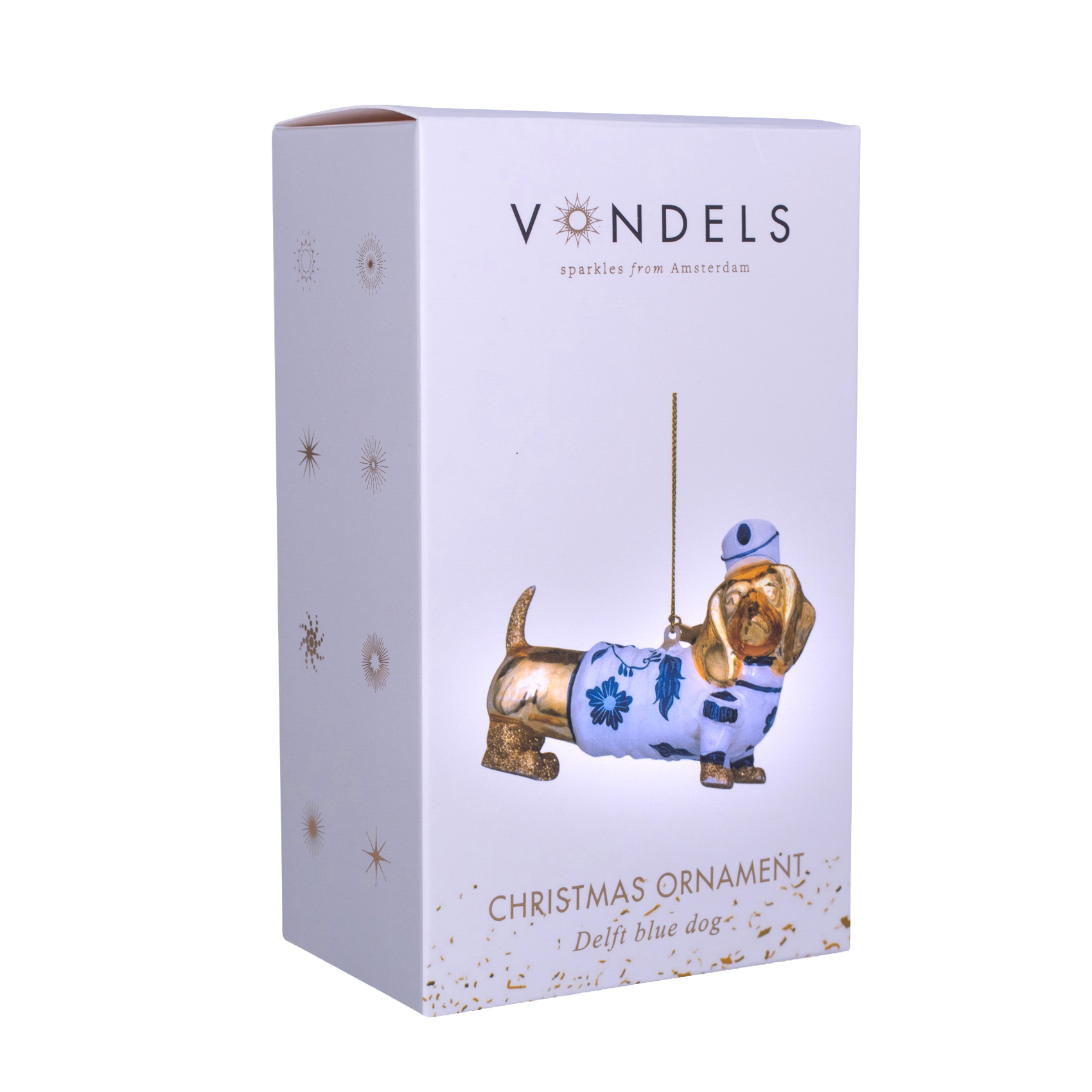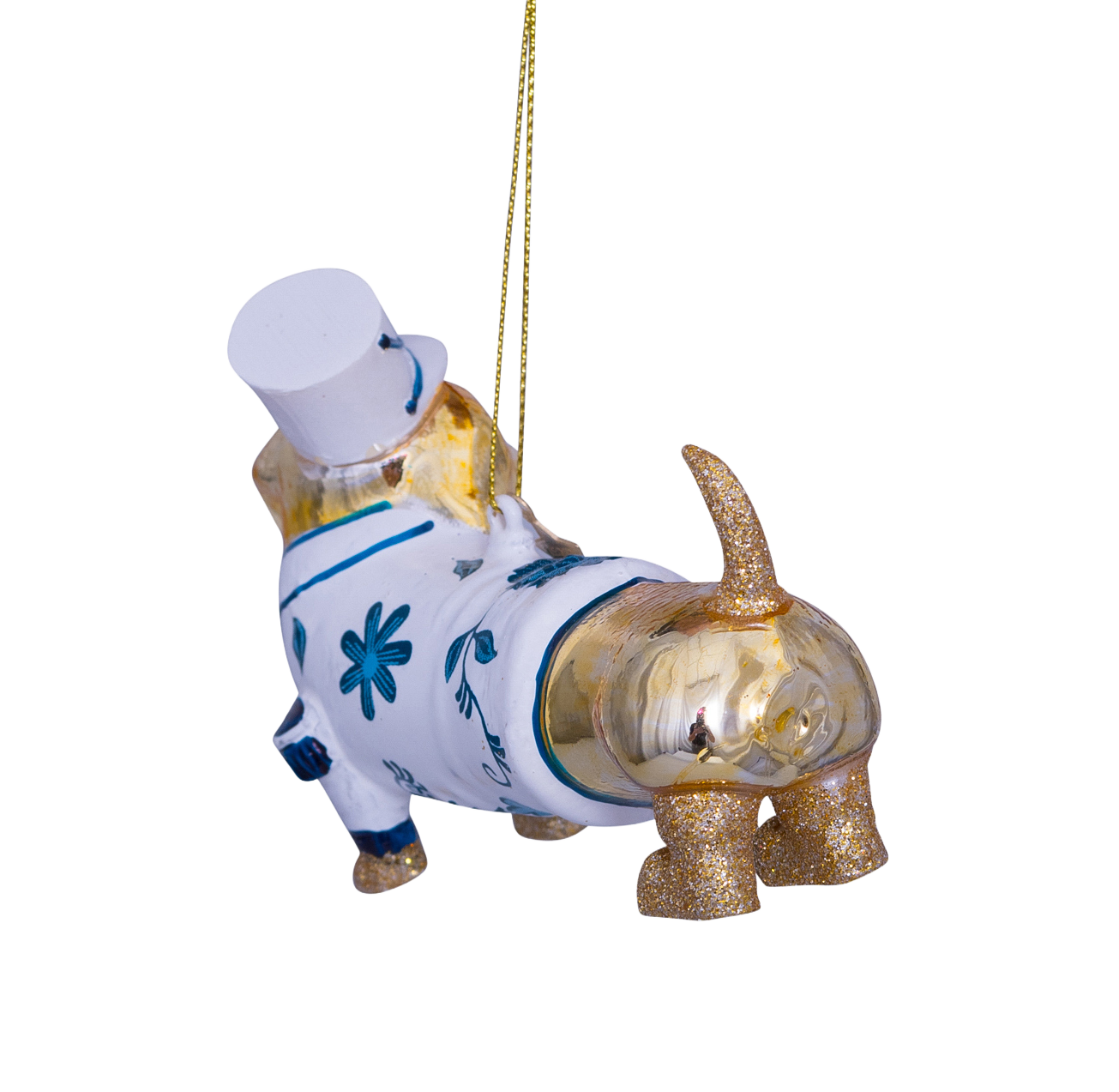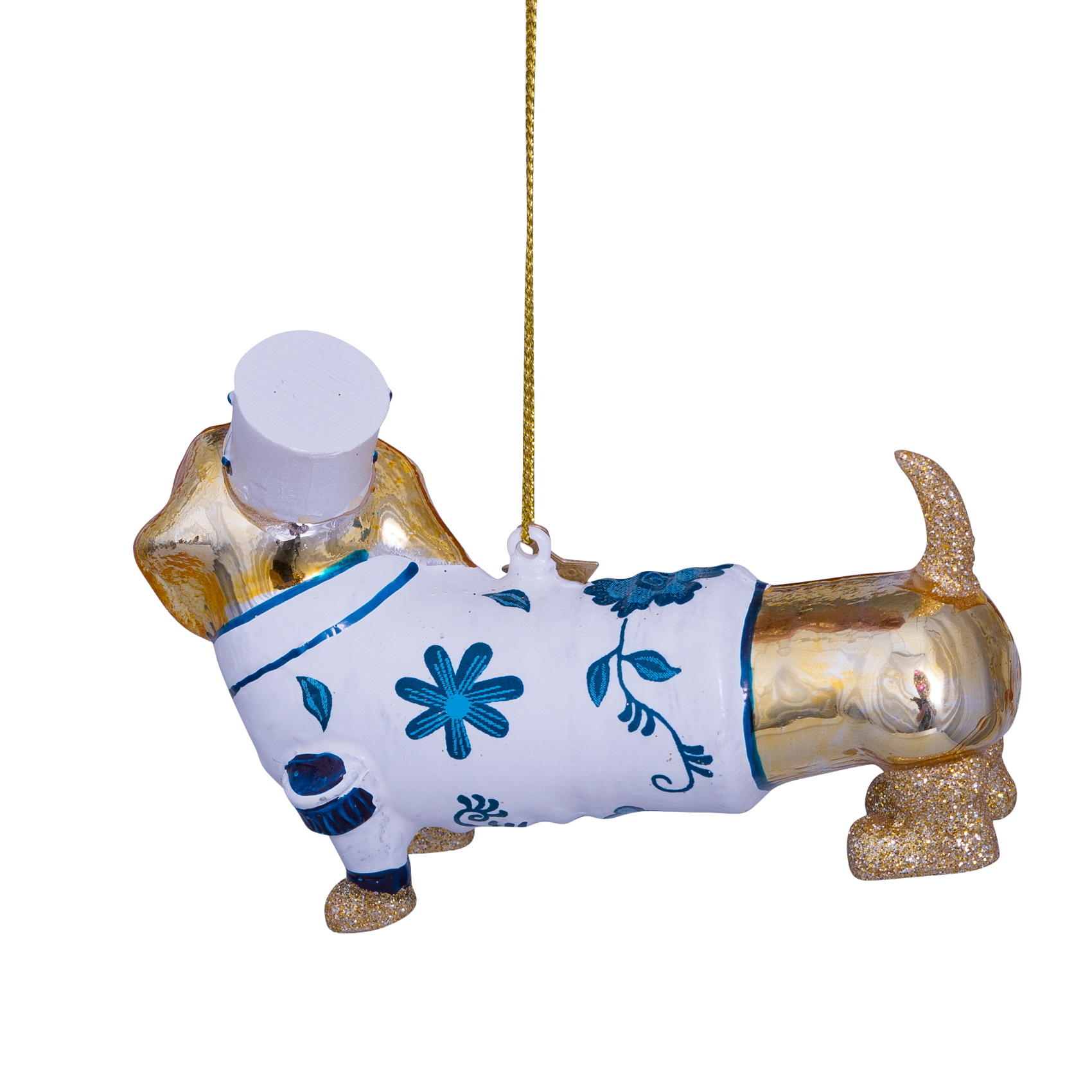 Ornament aus Glas, gold/delfterblau, Hund, H9cm, mit Schachtel