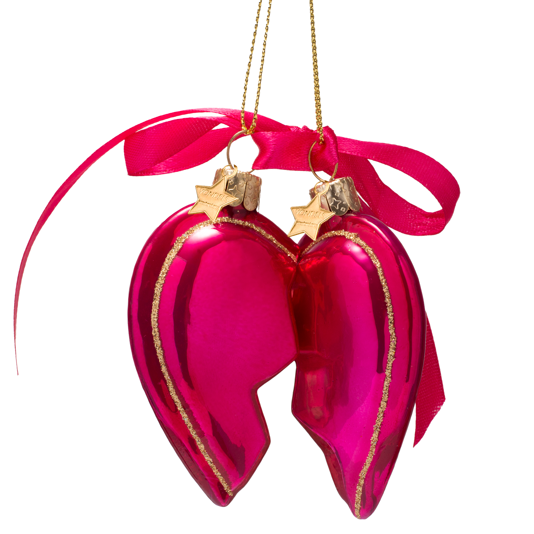 Ornamentglas, himbeerrosa, Set mit Herzmotiven für beste Freundinnen, H8