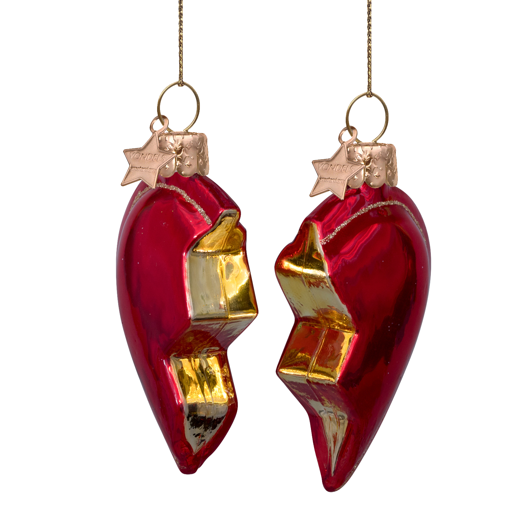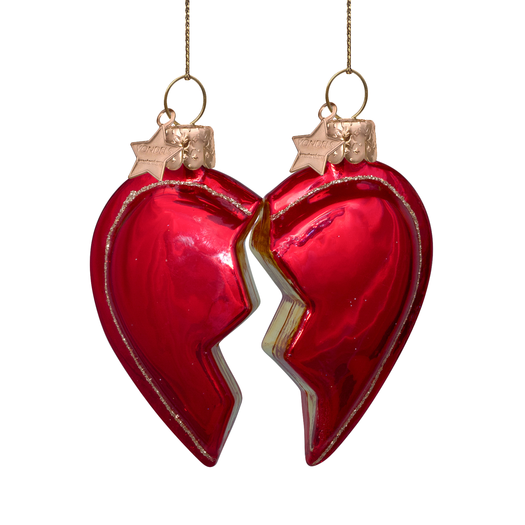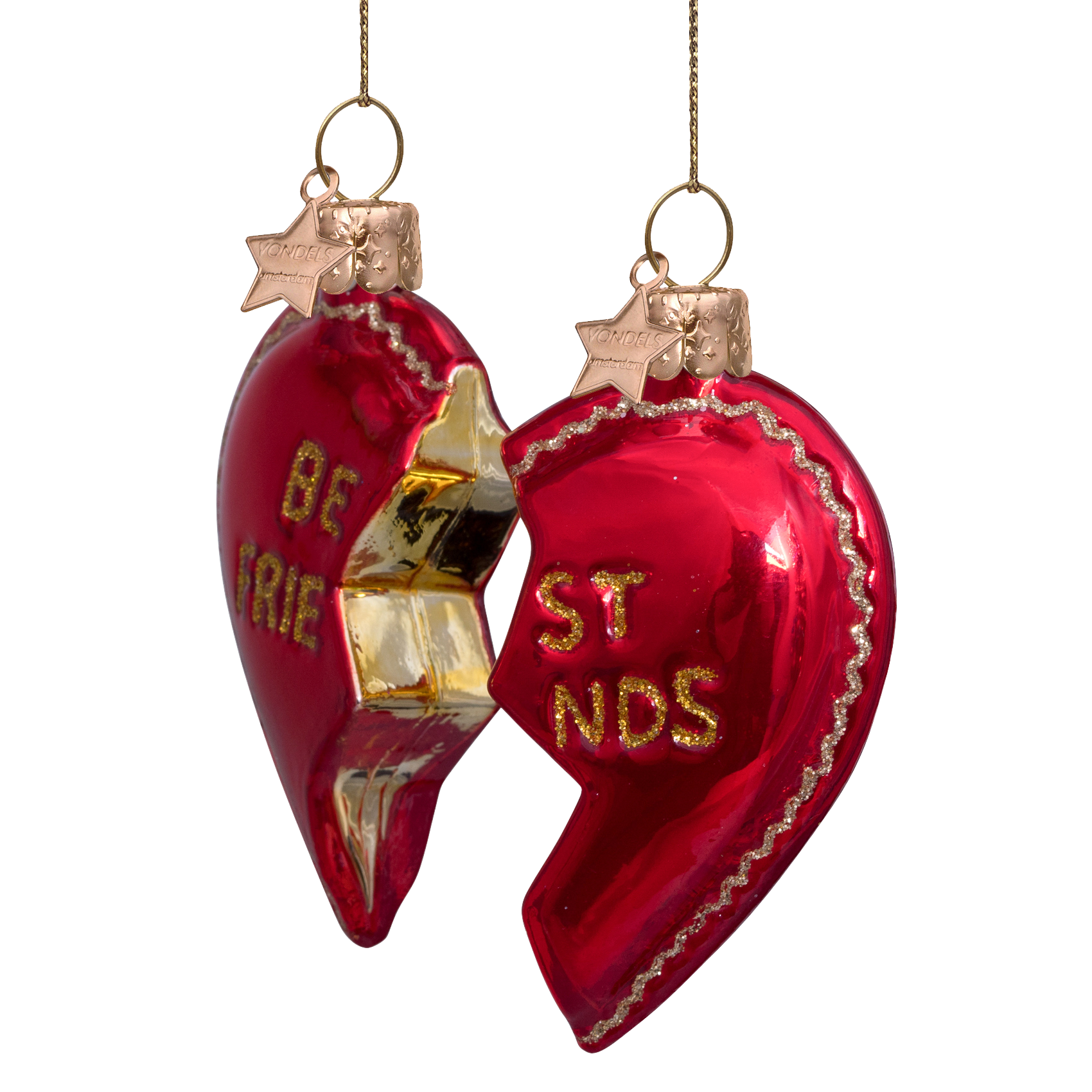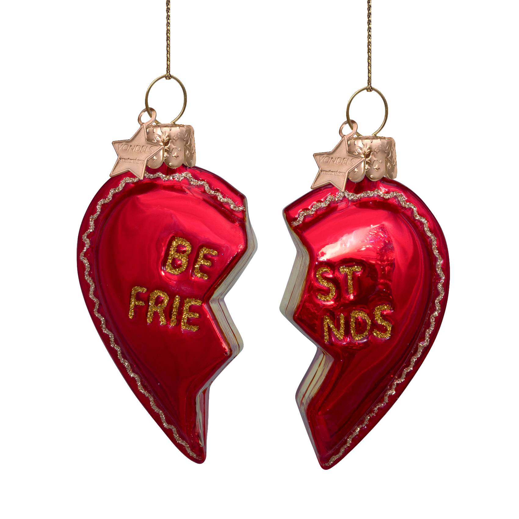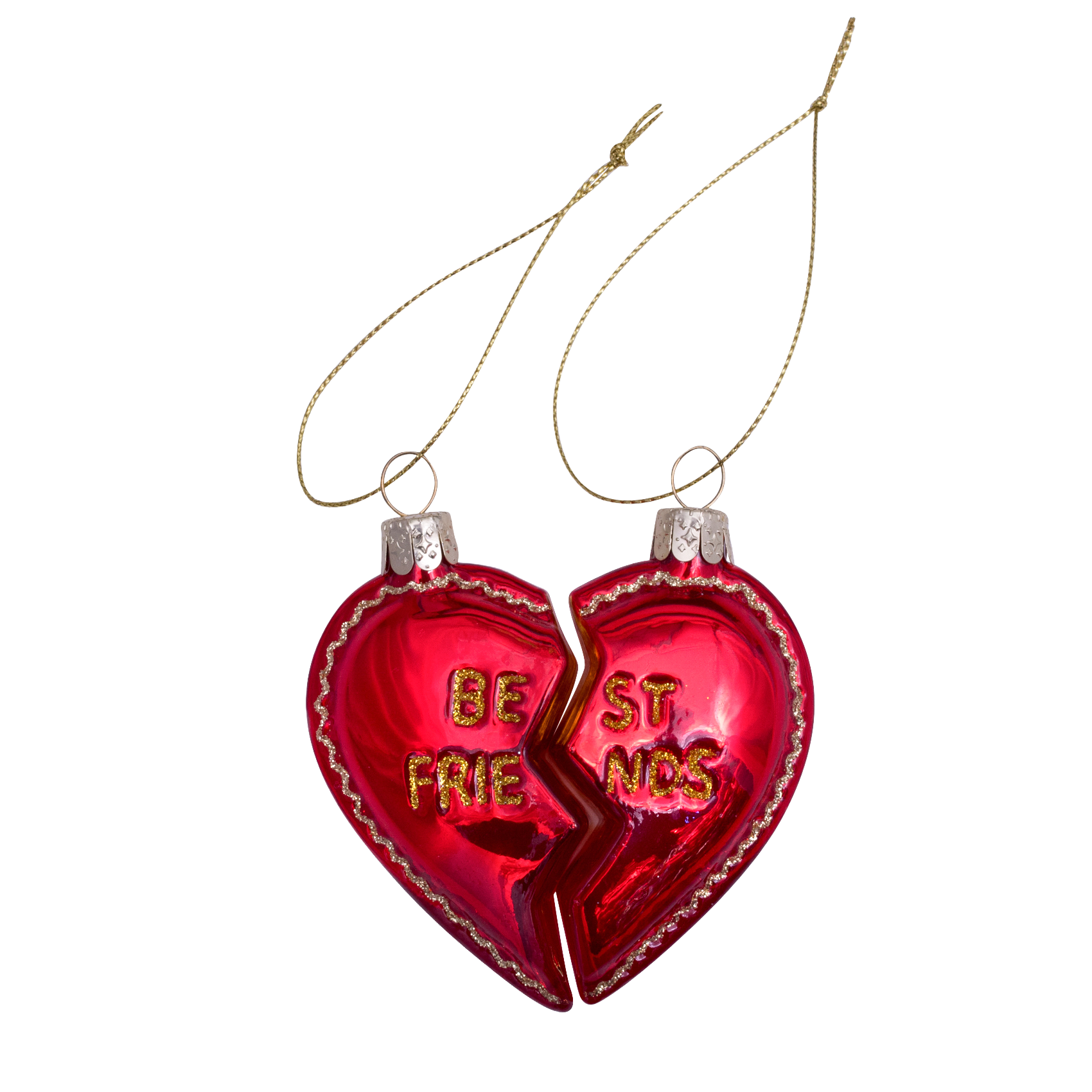 Ornament-Glas-Set, Herzform, beste Freunde, H 8,5 cm
