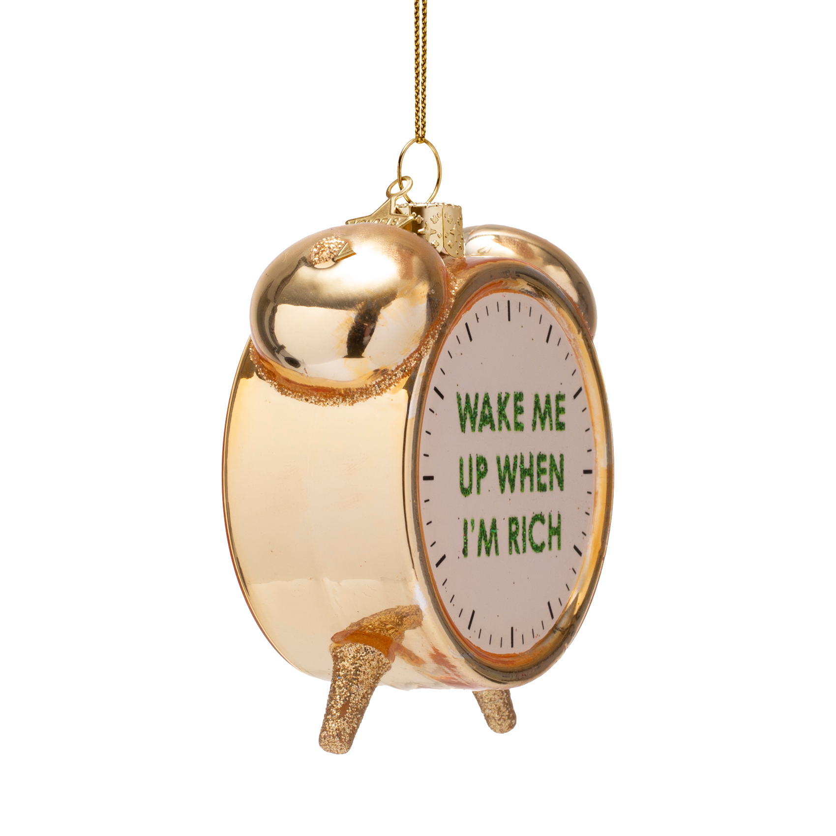 Ornamentale, glänzende, goldfarbene Weckeruhr, Höhe 9 cm