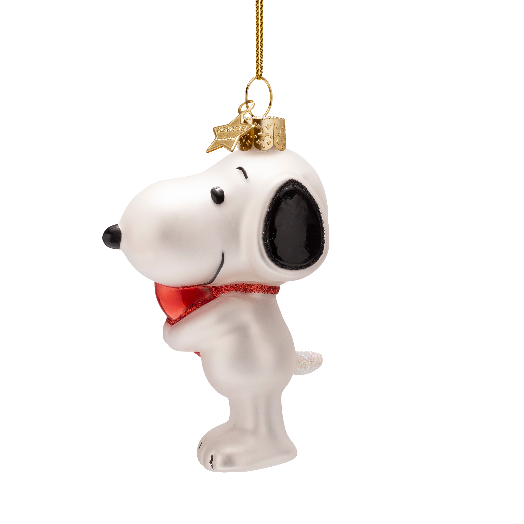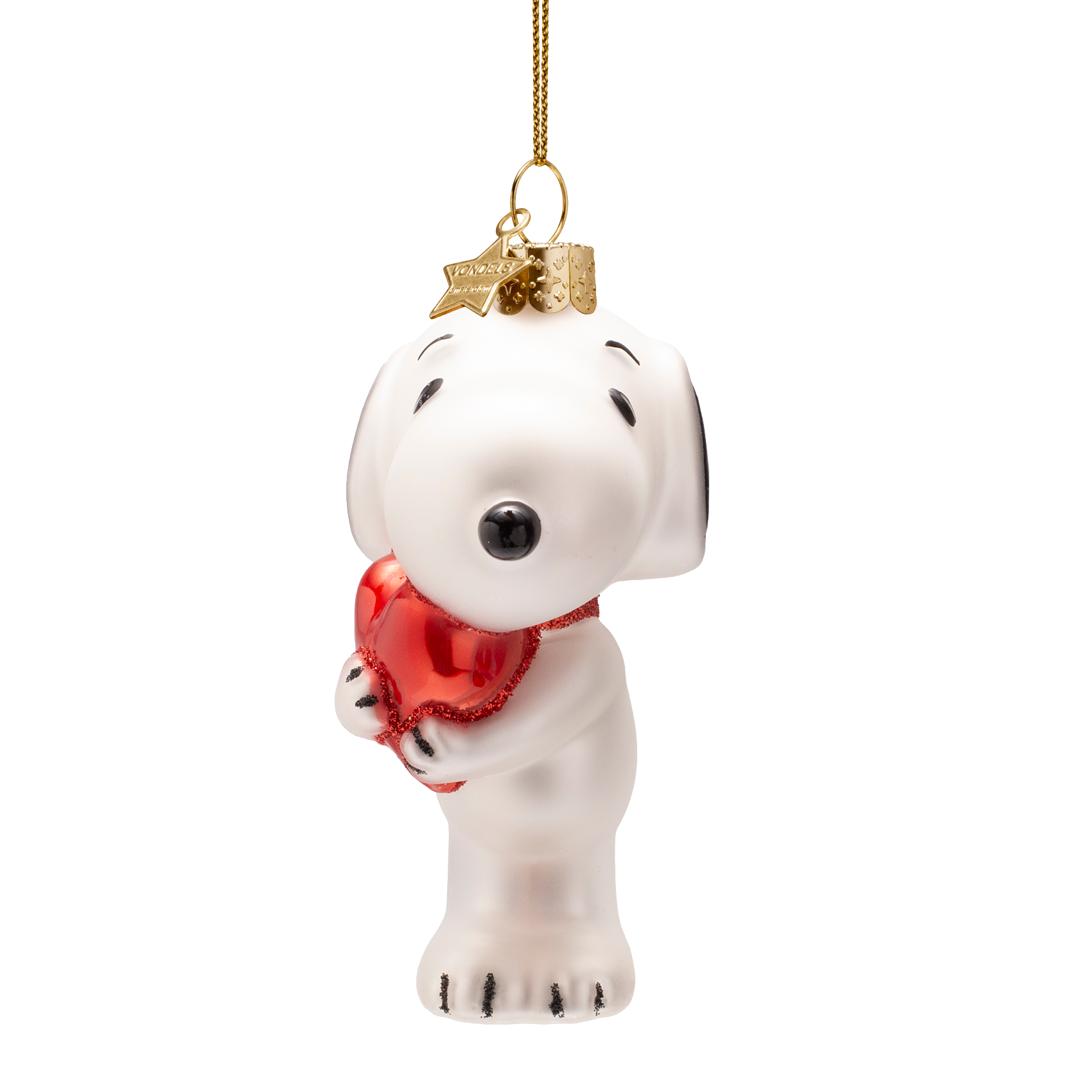 Snoopy/Peanuts-Glasornament mit Herz, 11 cm hoch, mit Schachtel