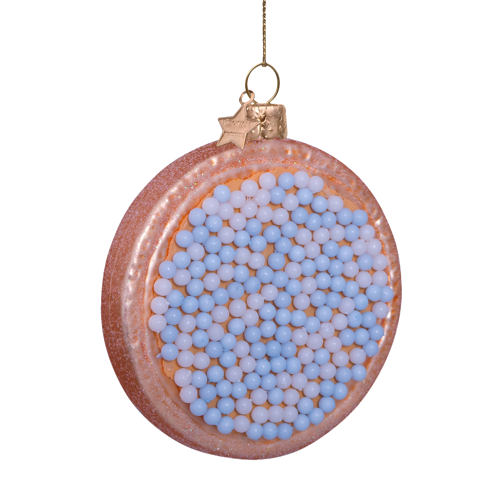 Ornamentglas blau/weiß, holländische Beschuitje, H 8,5 cm, mit Schachtel