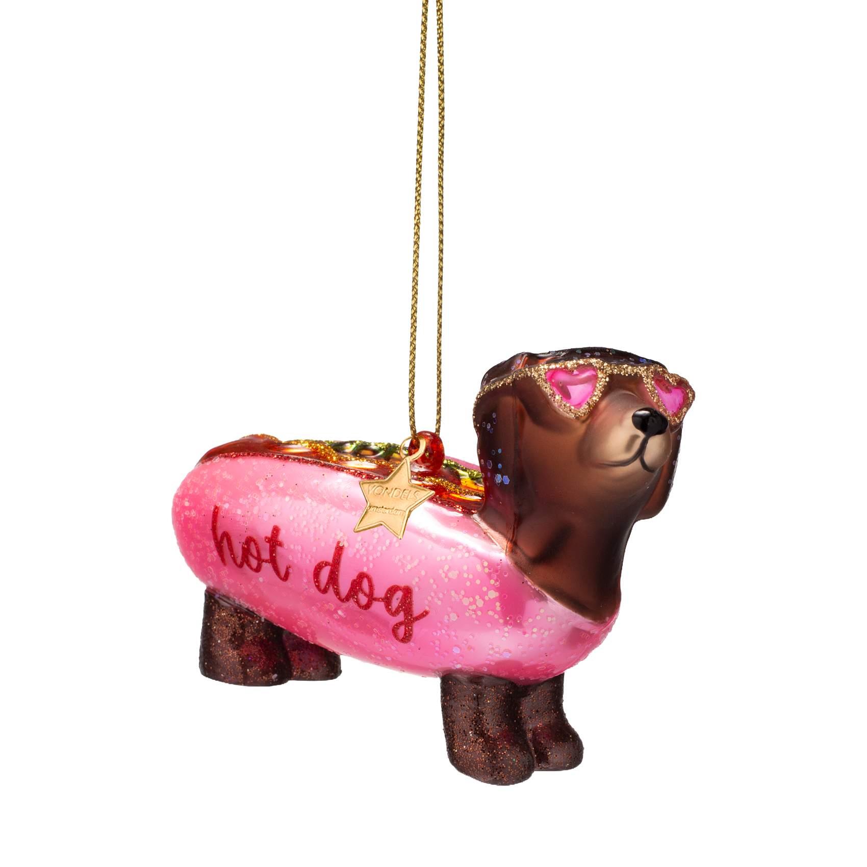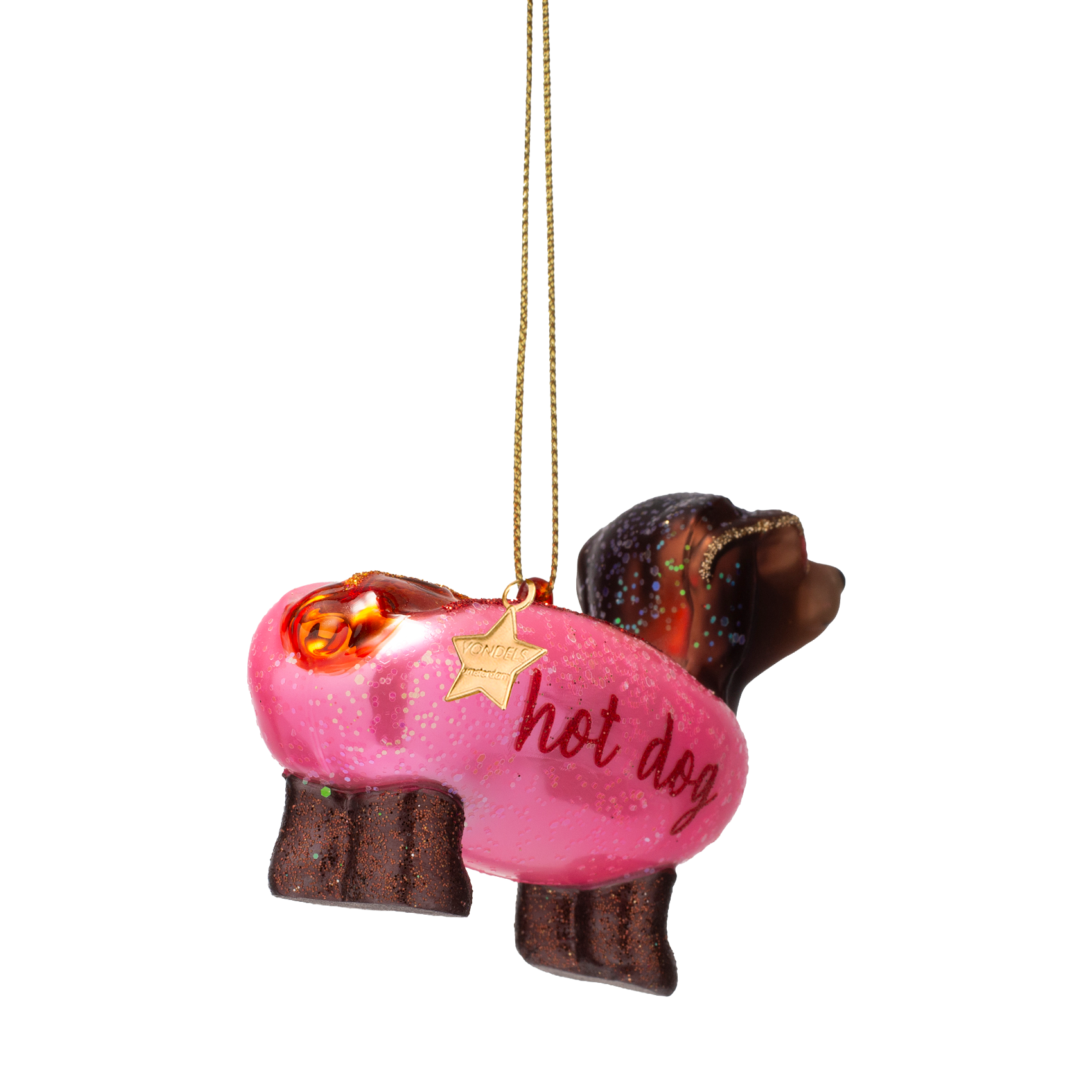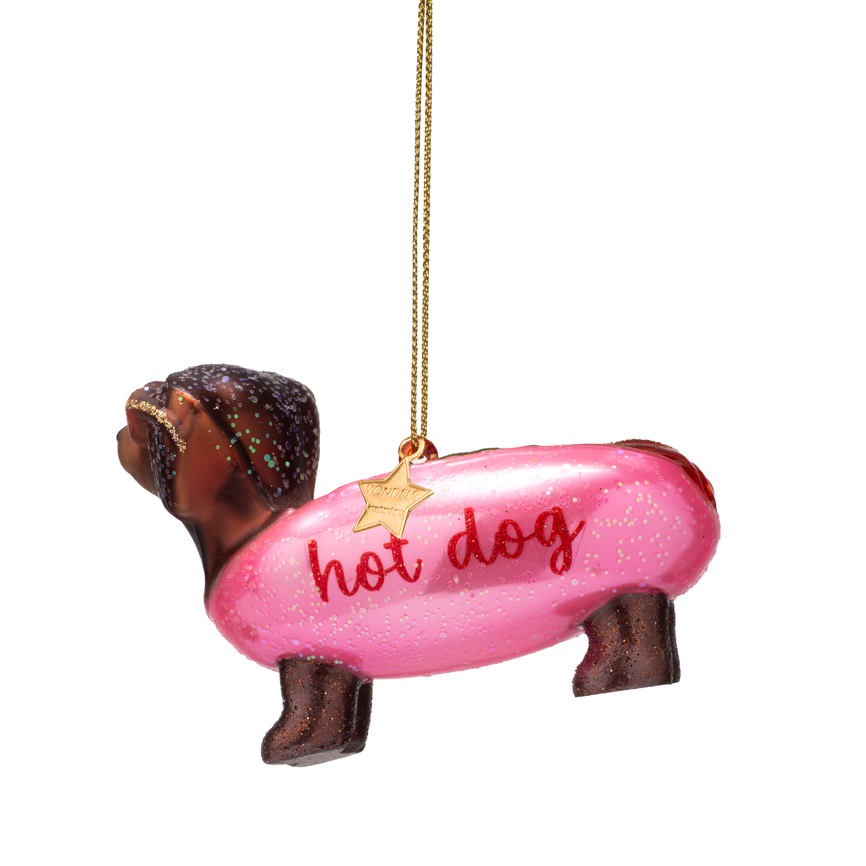 Ornament aus Glas, kaugummirosa Hotdog-Dackel, H6cm