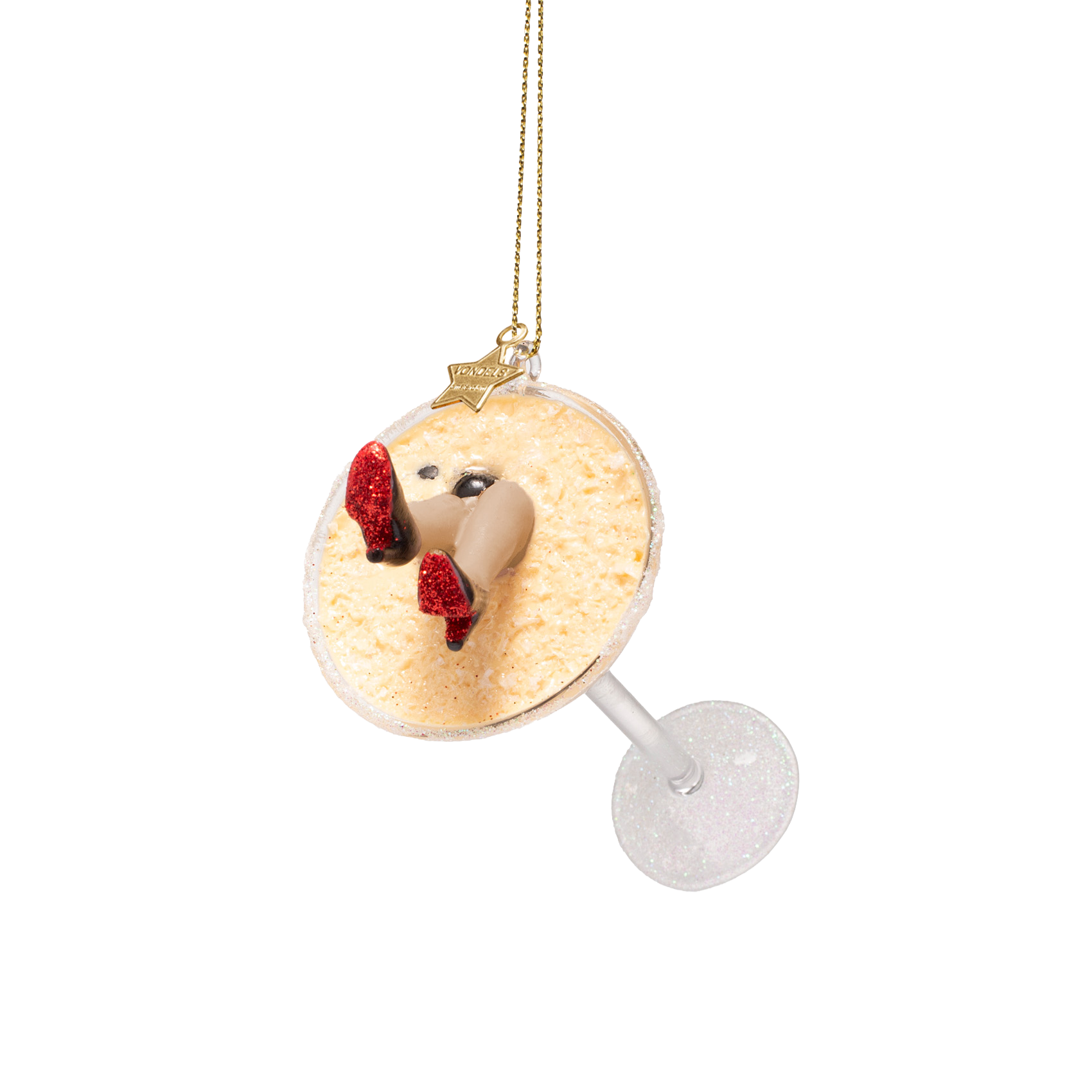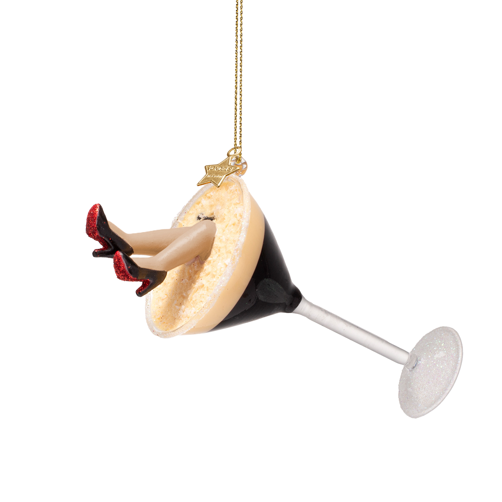 Ornamentale Espresso-Martini-Figur aus Glas mit hohen Absätzen, Höhe 13 cm