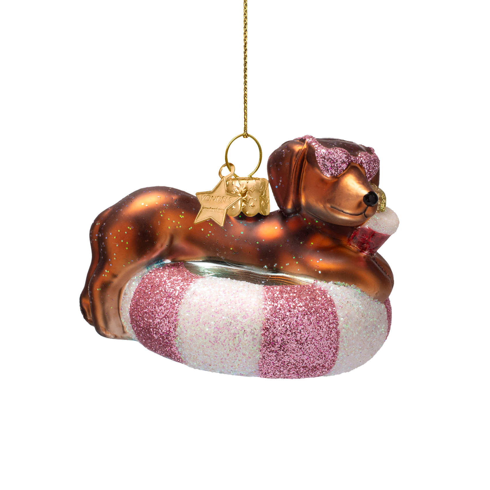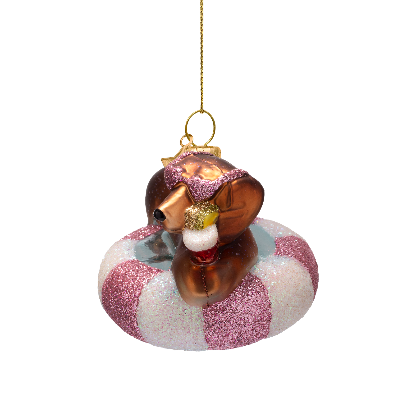 Dekorativer Glashund in verschiedenen Farben auf einer Poolmatratze, 6 cm hoch