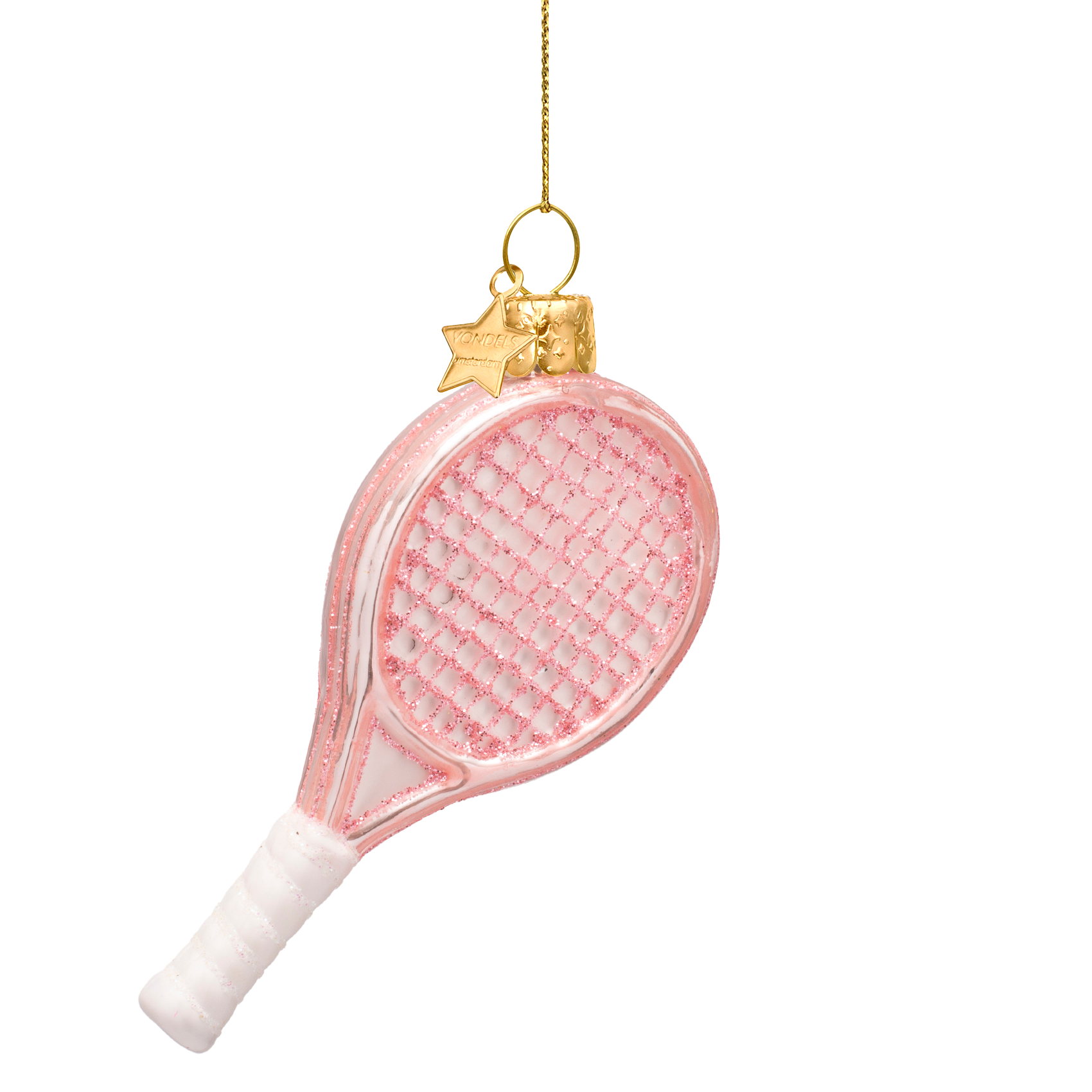 Dekorativer Tennisschläger aus Opalglas, zartrosa, Höhe 10 cm