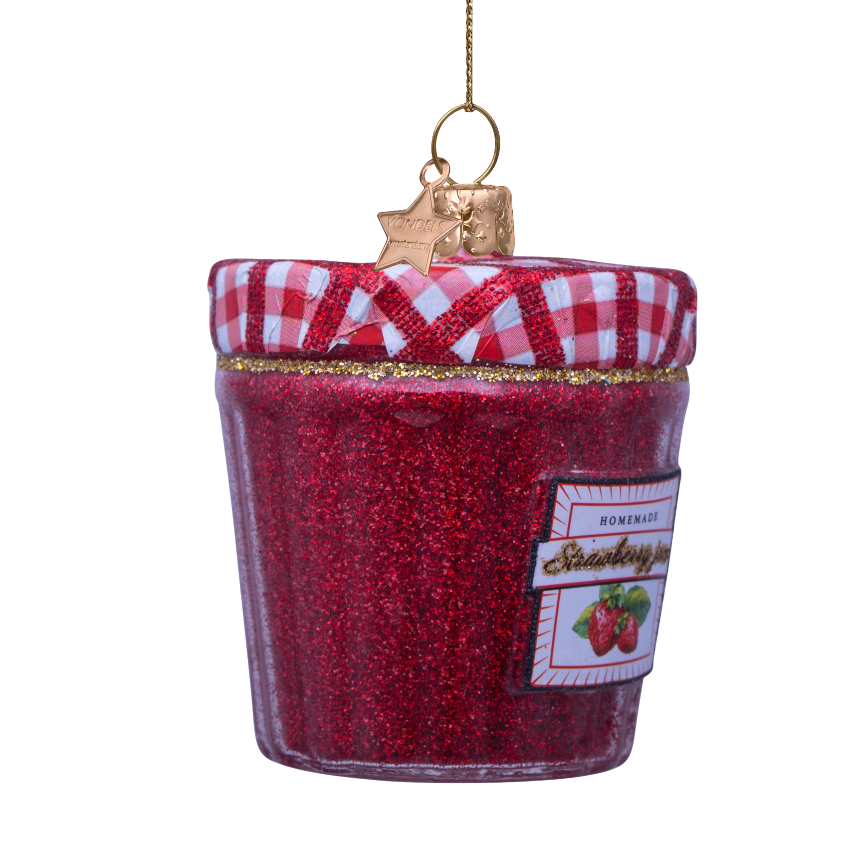 Dekoratives rotes Erdbeermarmeladenglas, H7cm