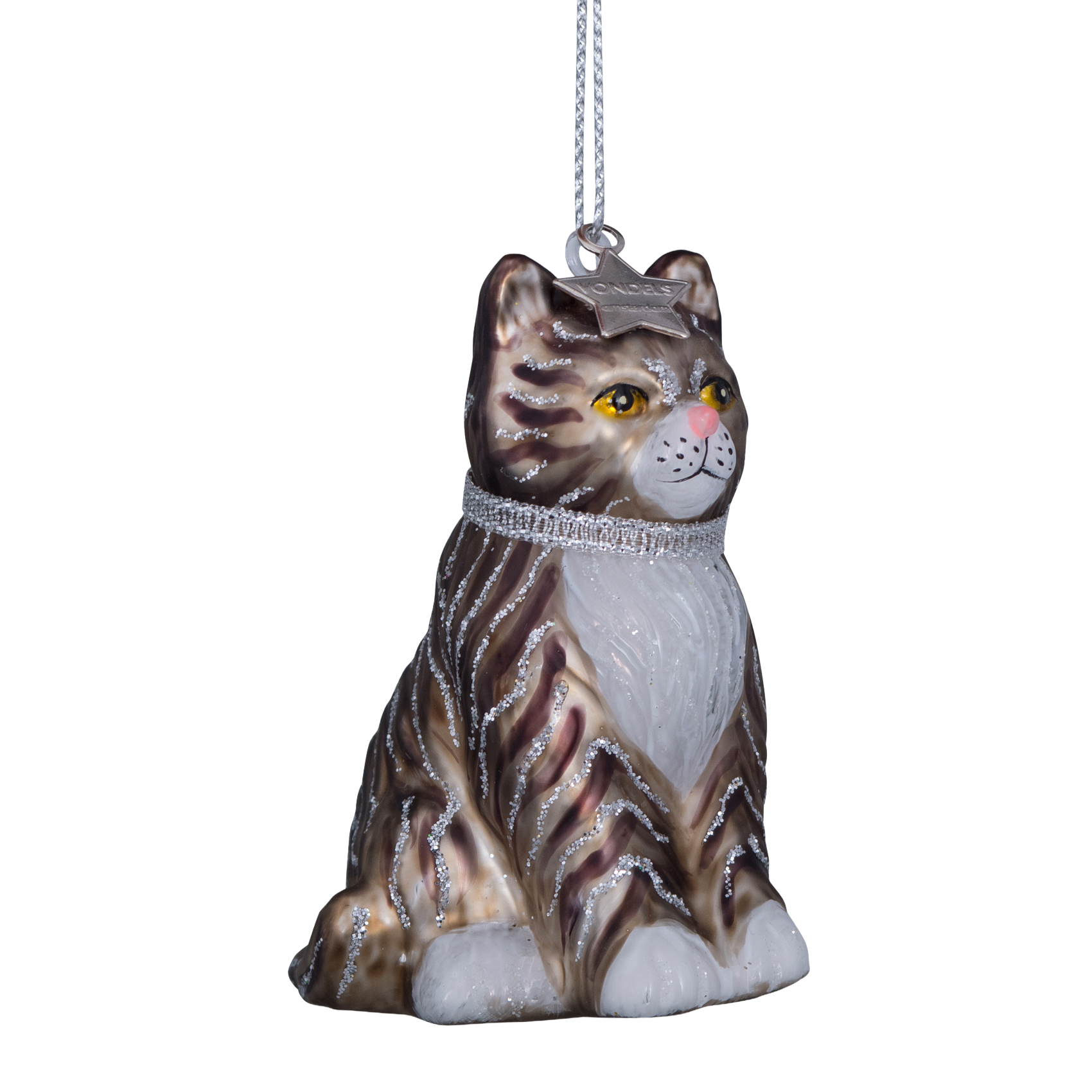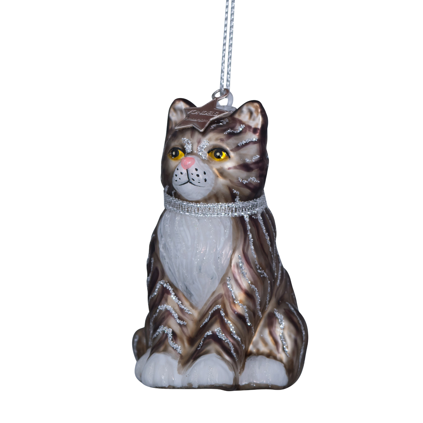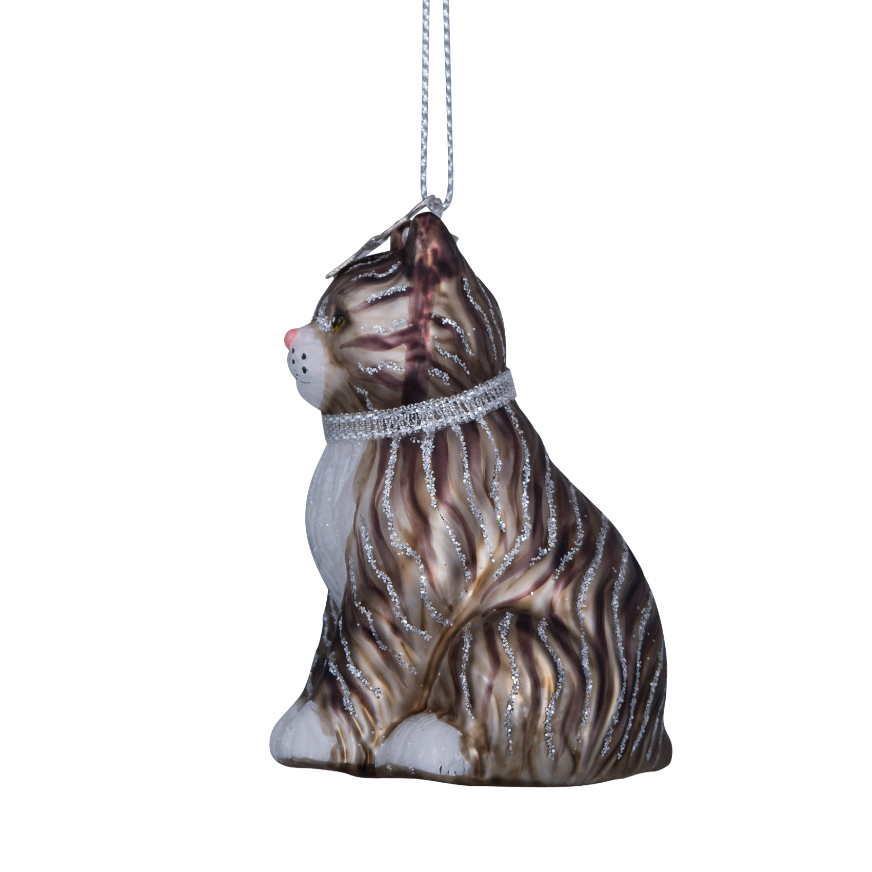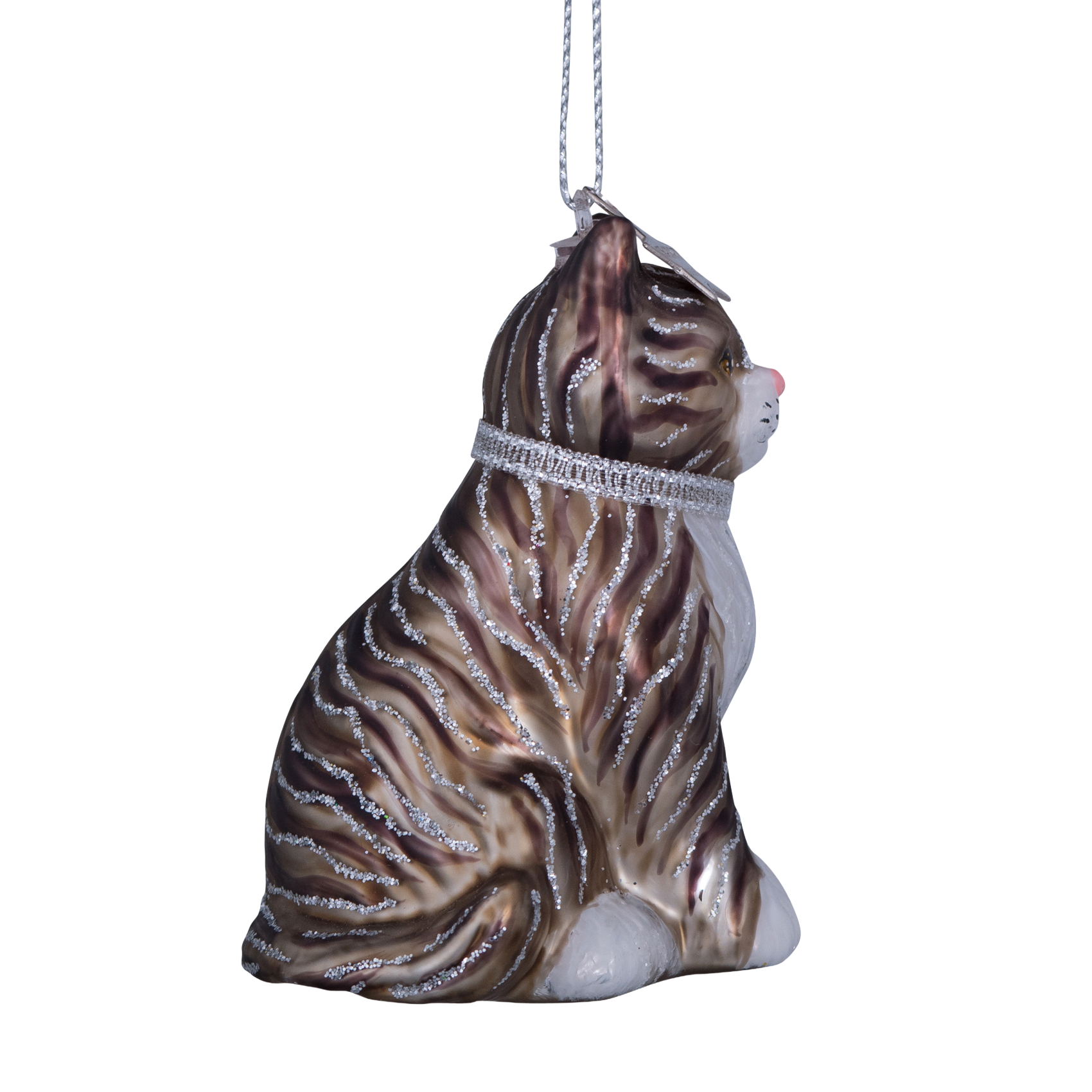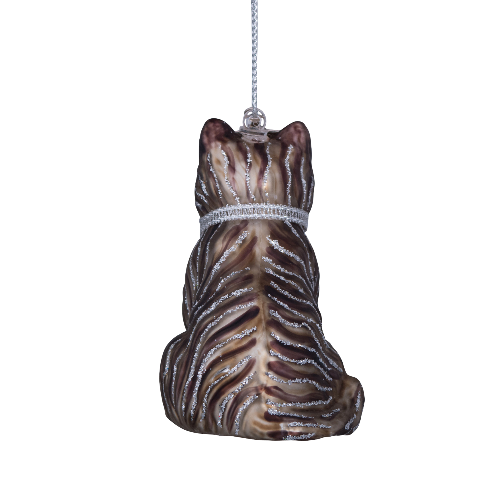 Ornamentkatze aus Glas, weiß/grau, Höhe 7,5 cm