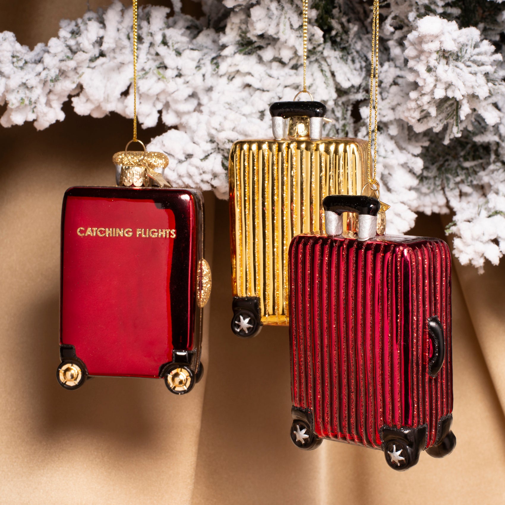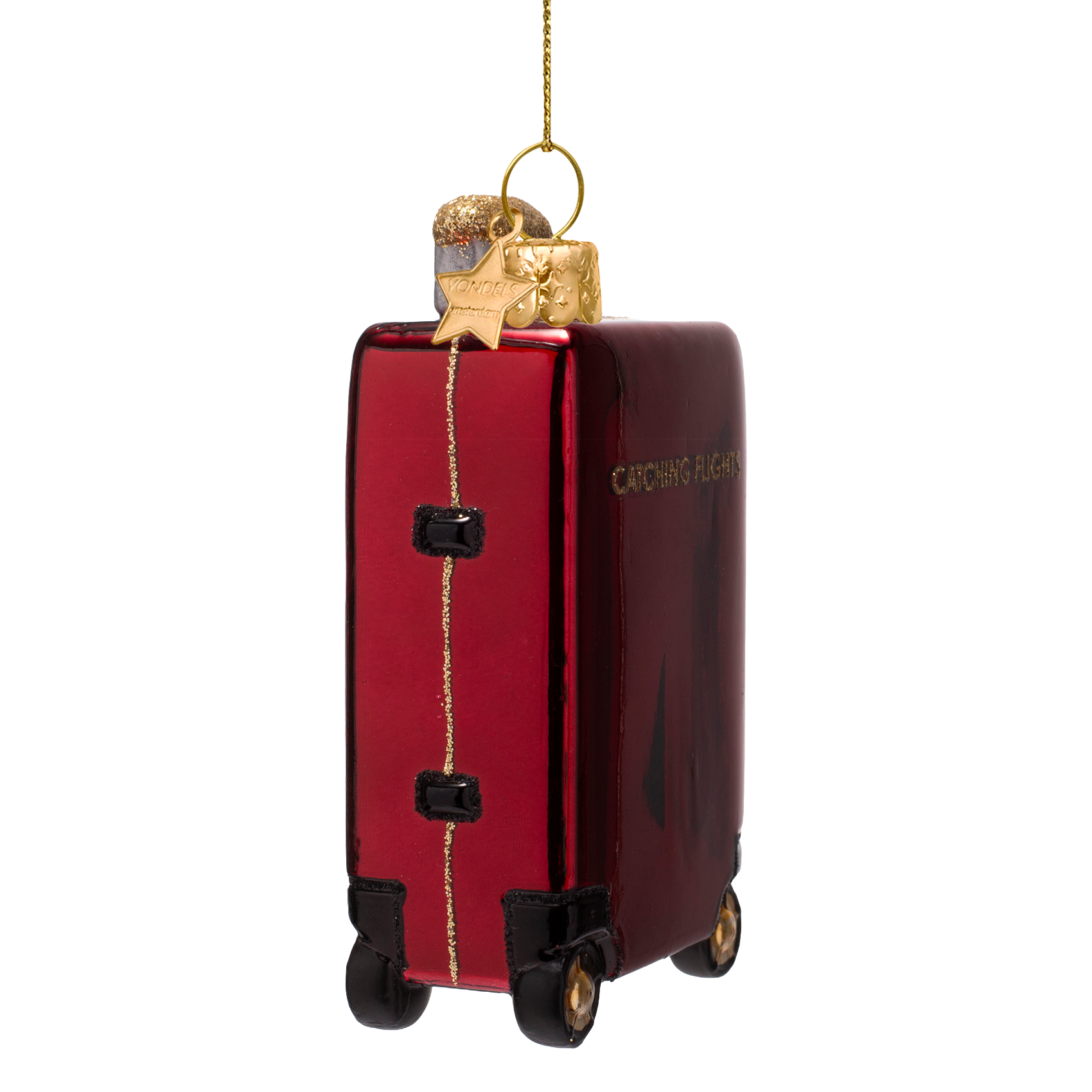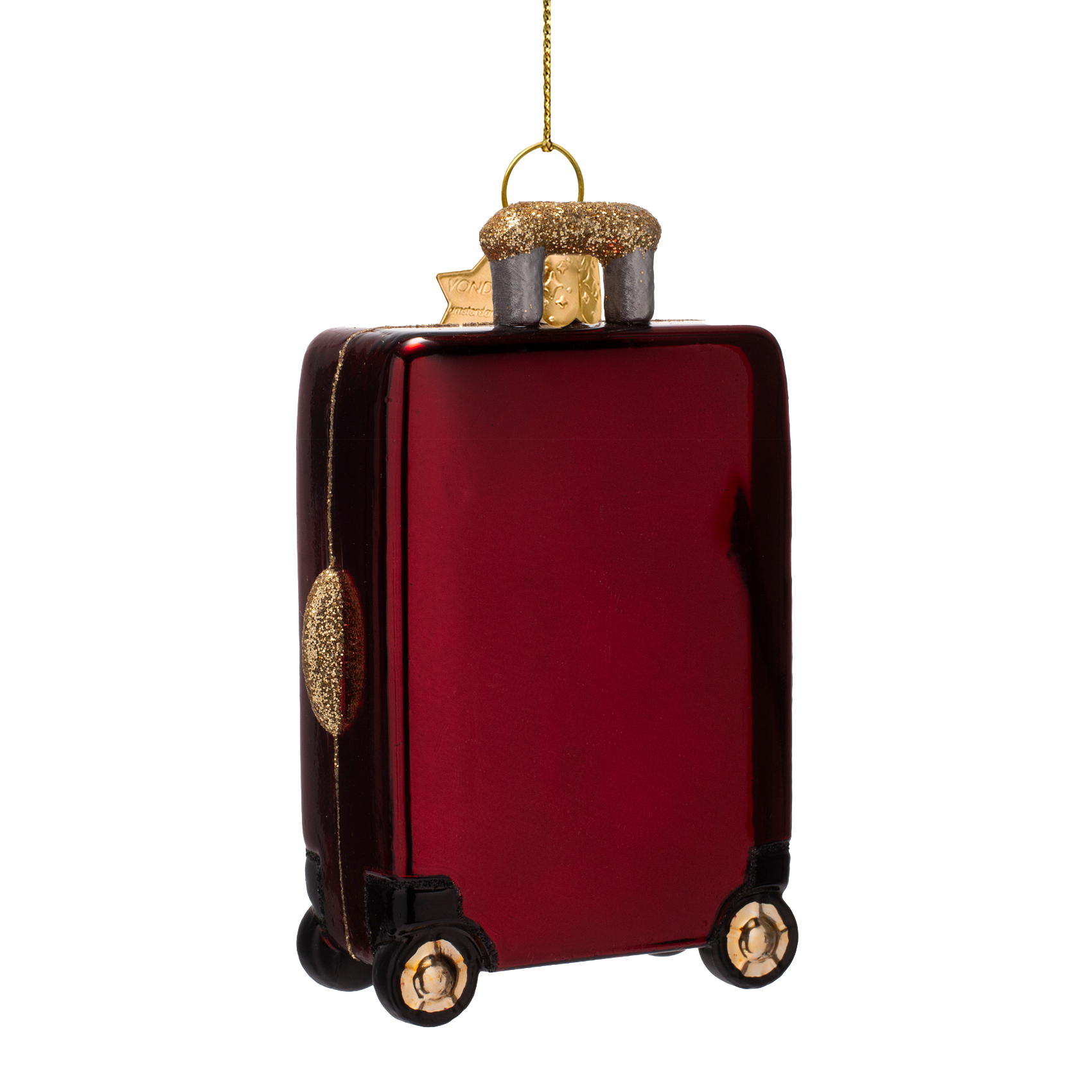 Ornament glass burgundy suitcase w/catching flights H10cm