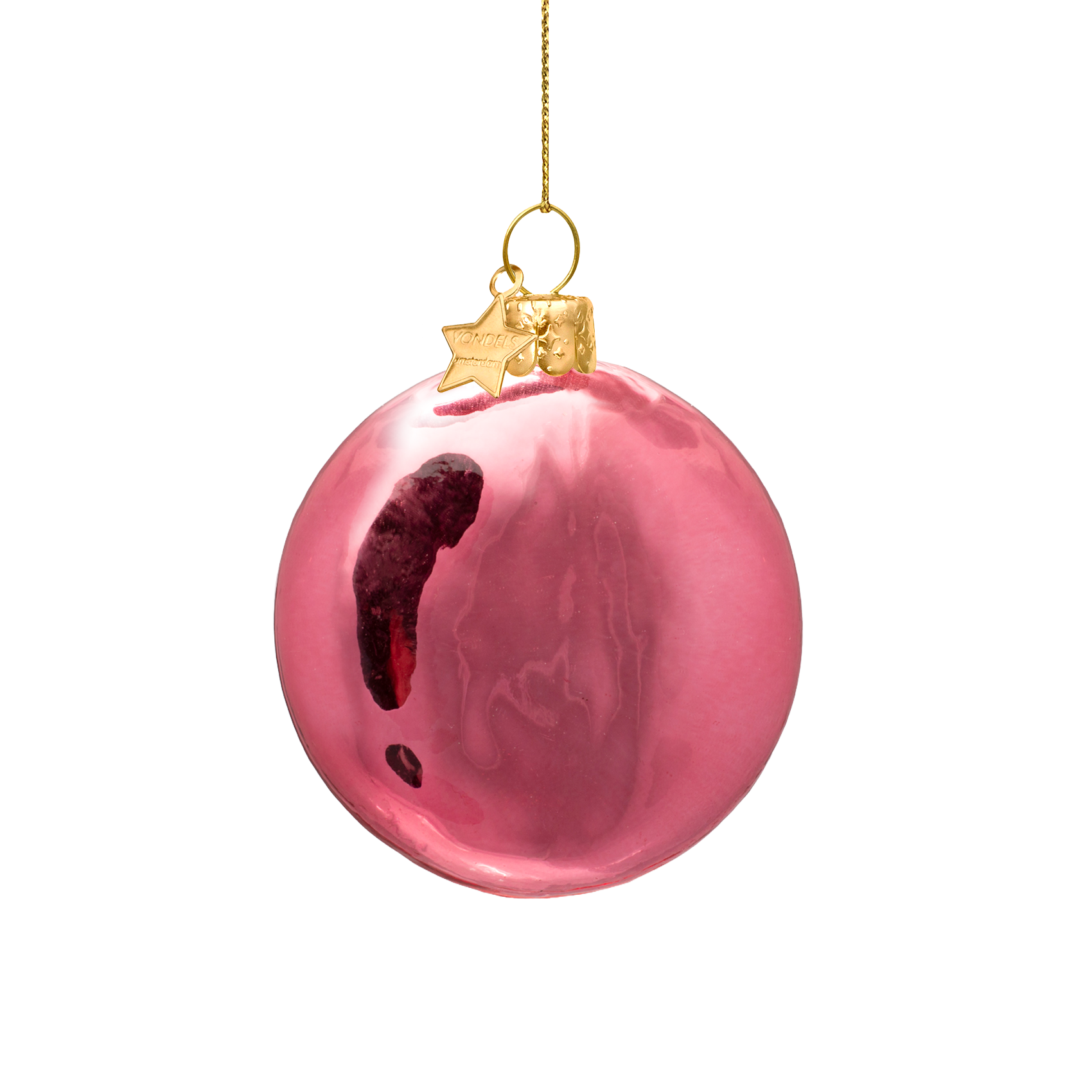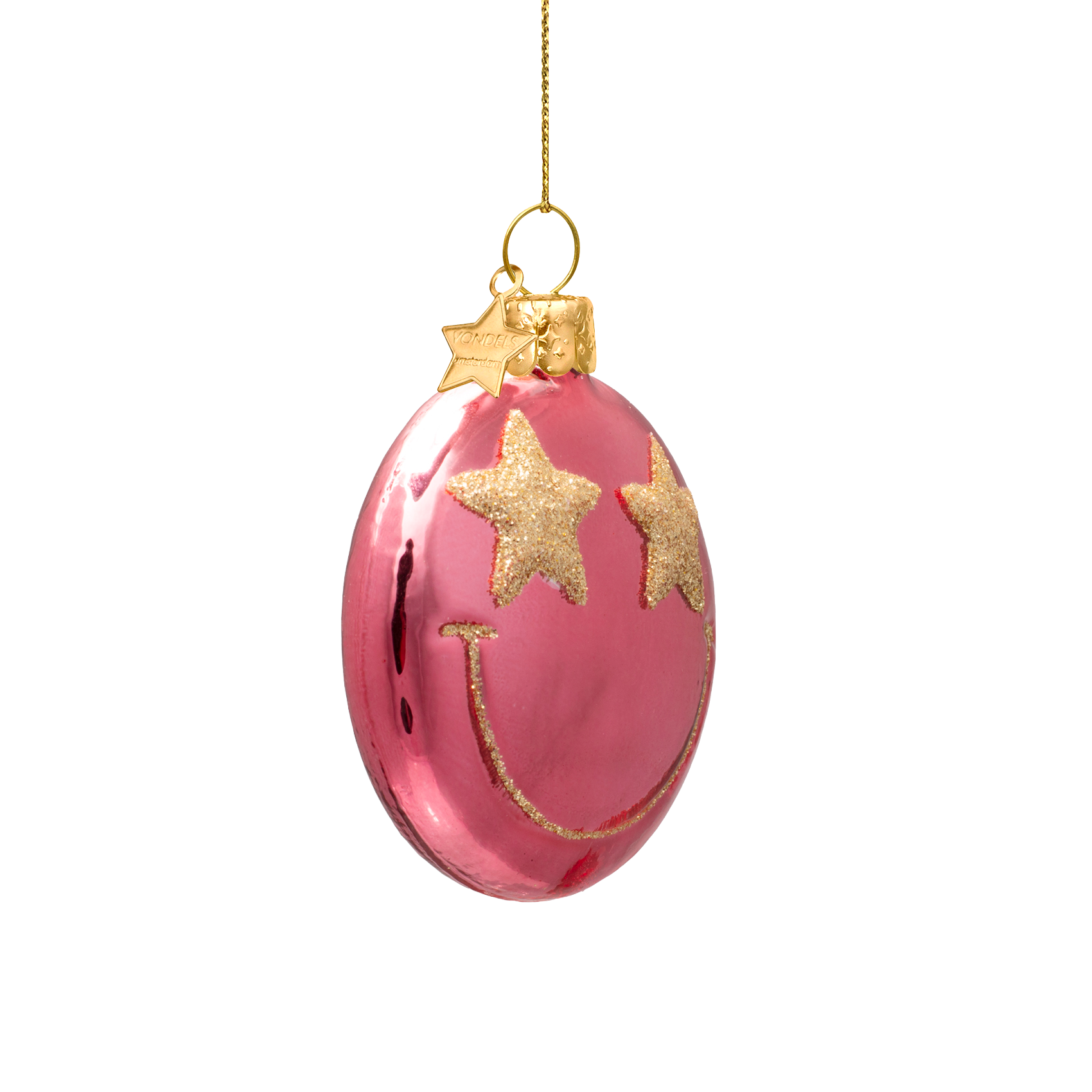 Ornament glass rose pink smiley w/ star eyes H7cm