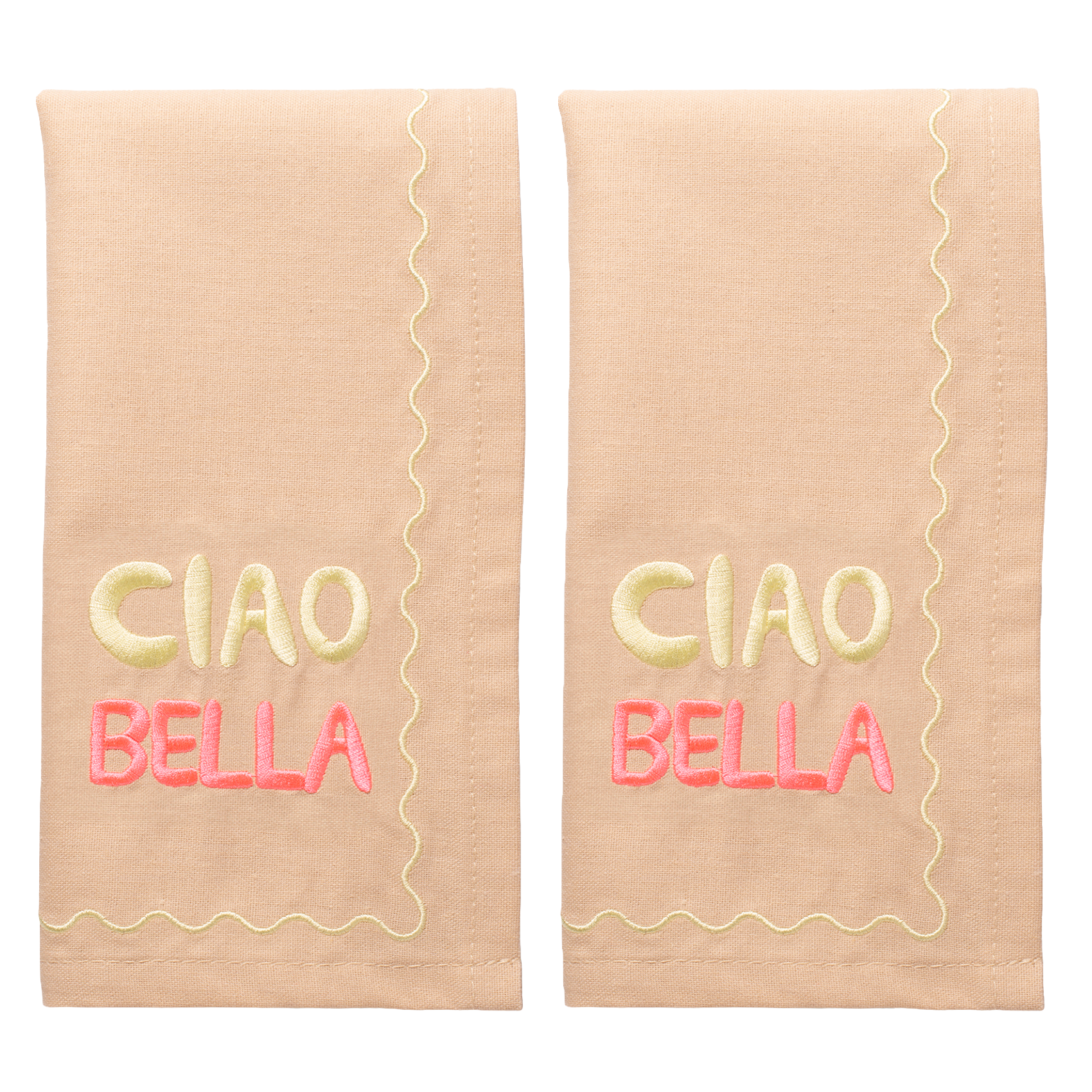 Embroidered napkins CIAO BELLA warm beige 45cm Pack of 2#