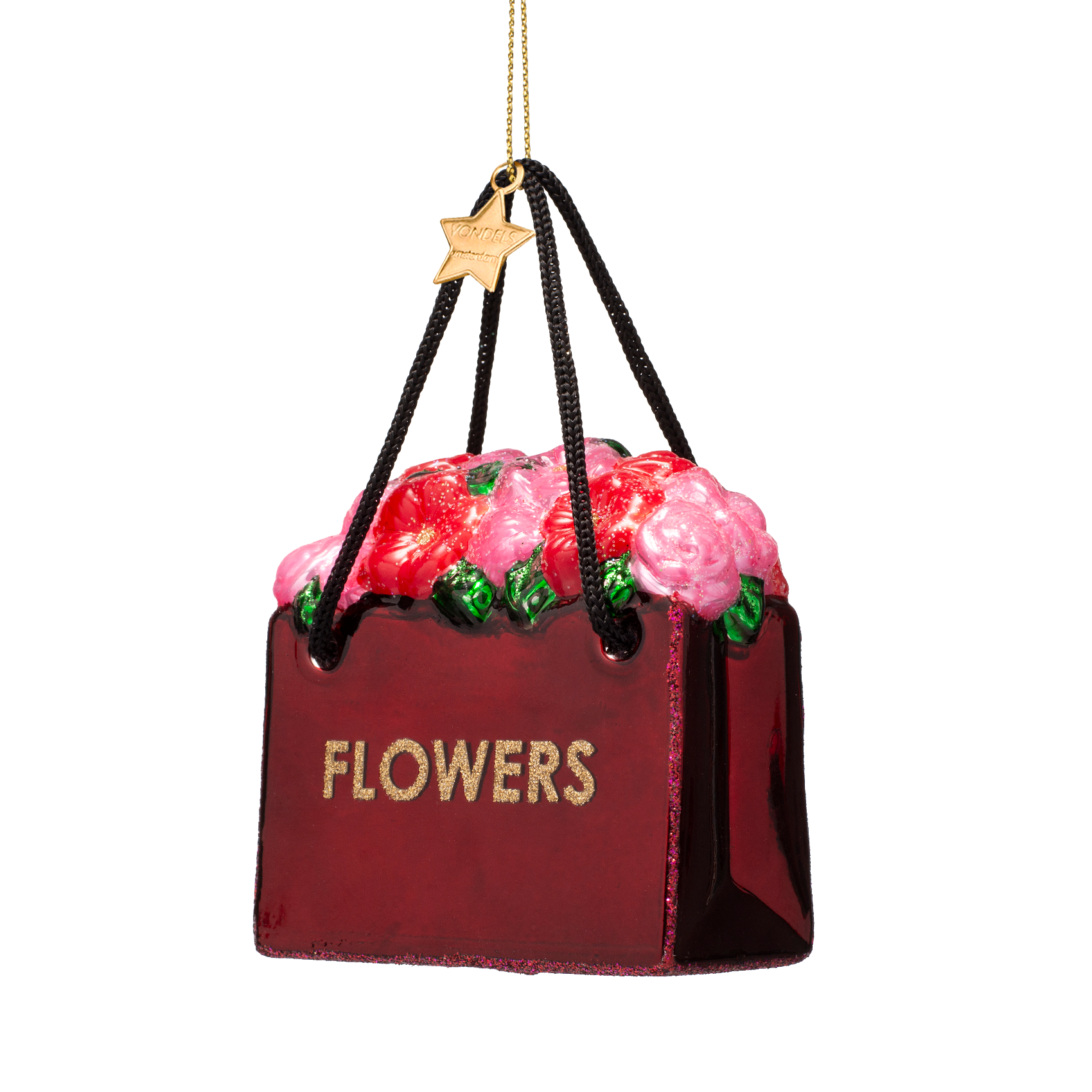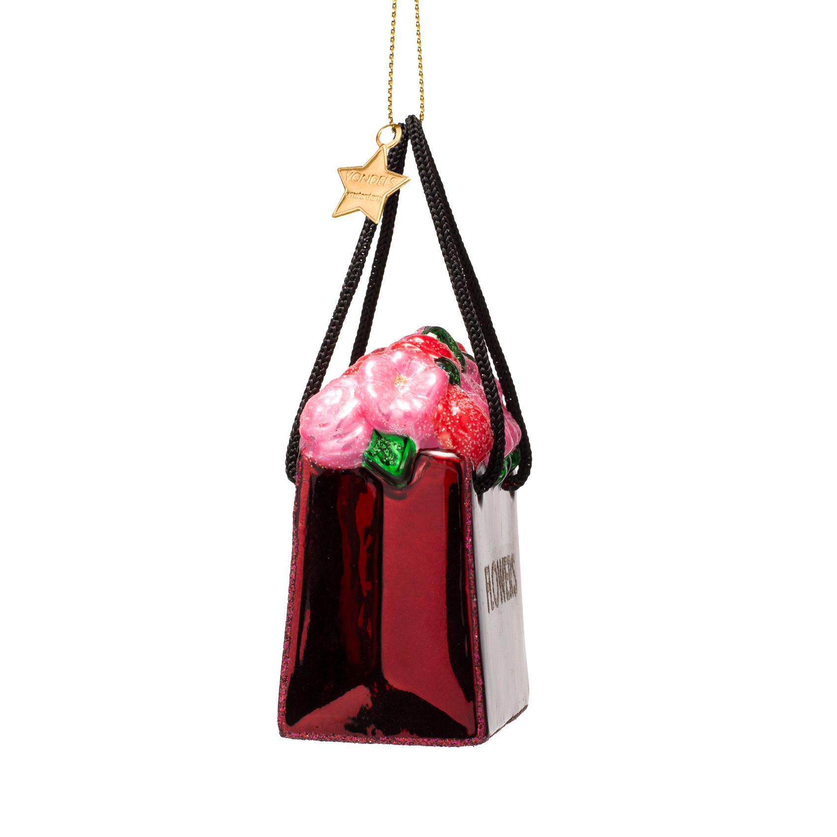 Ornament glass burgundy flower bag H7.5cm