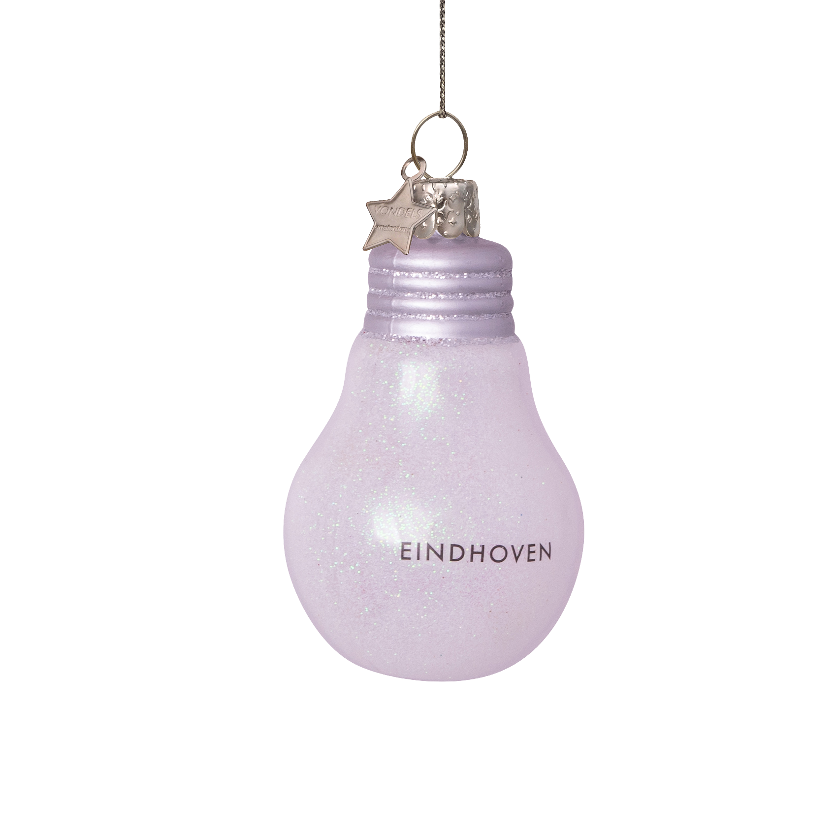 Ornament glass lamp glitter w/text Eindhoven H8cm