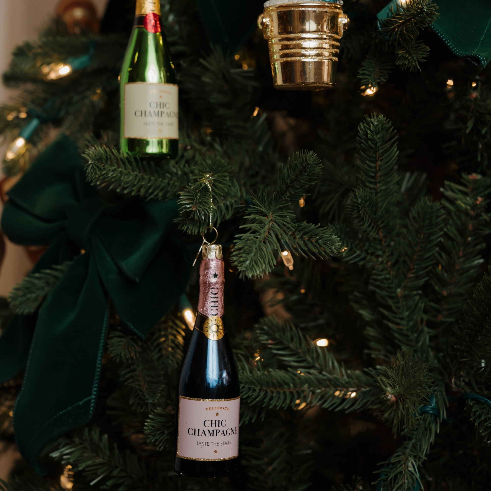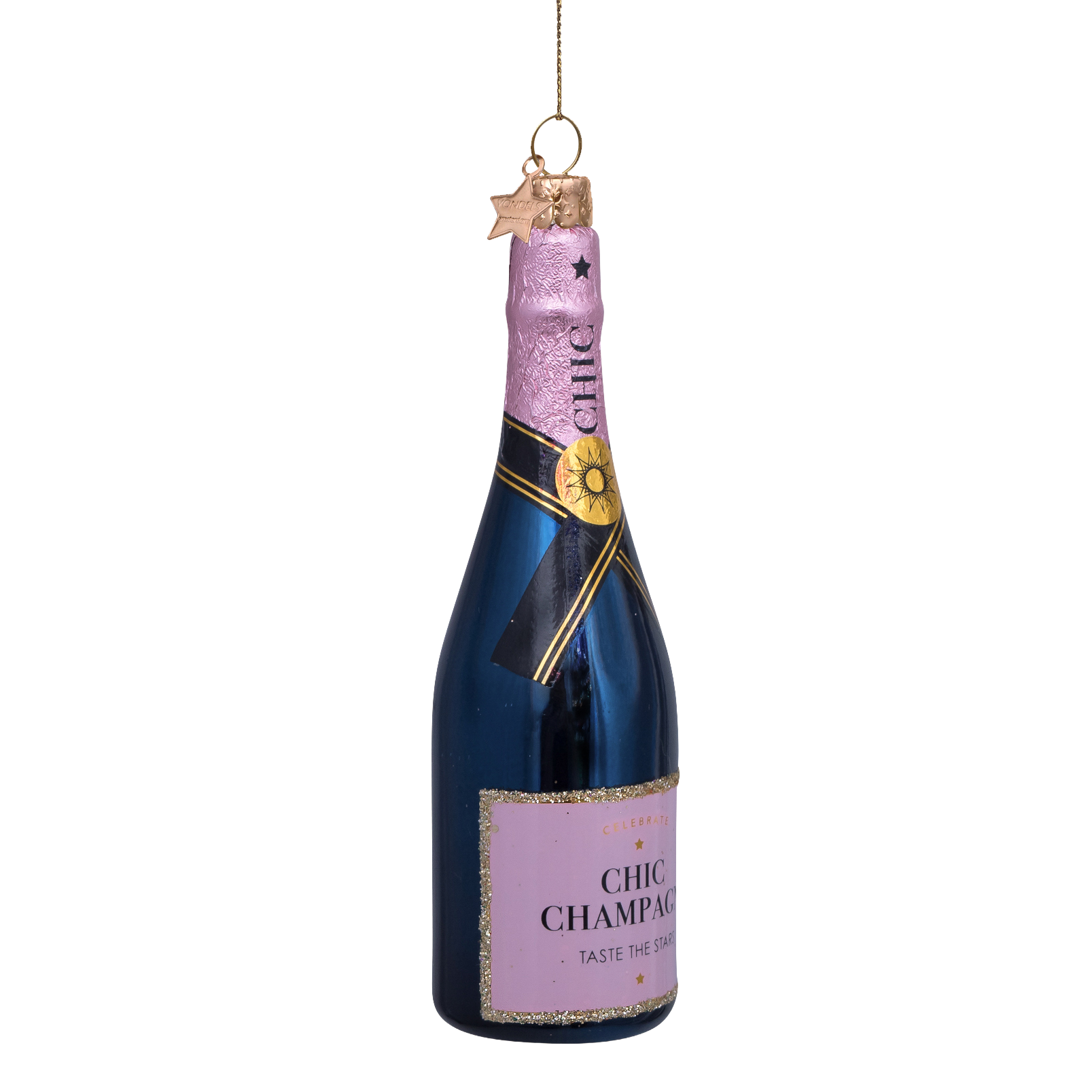 Ornament glass luxury pink bottle w/ champagne H13cm