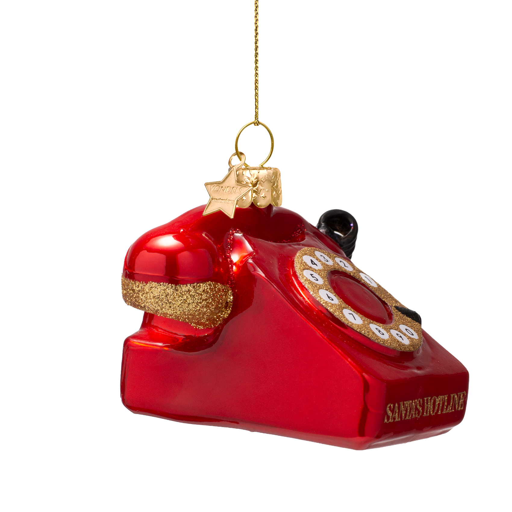 Ornament glass opal red vintage telephone H6cm