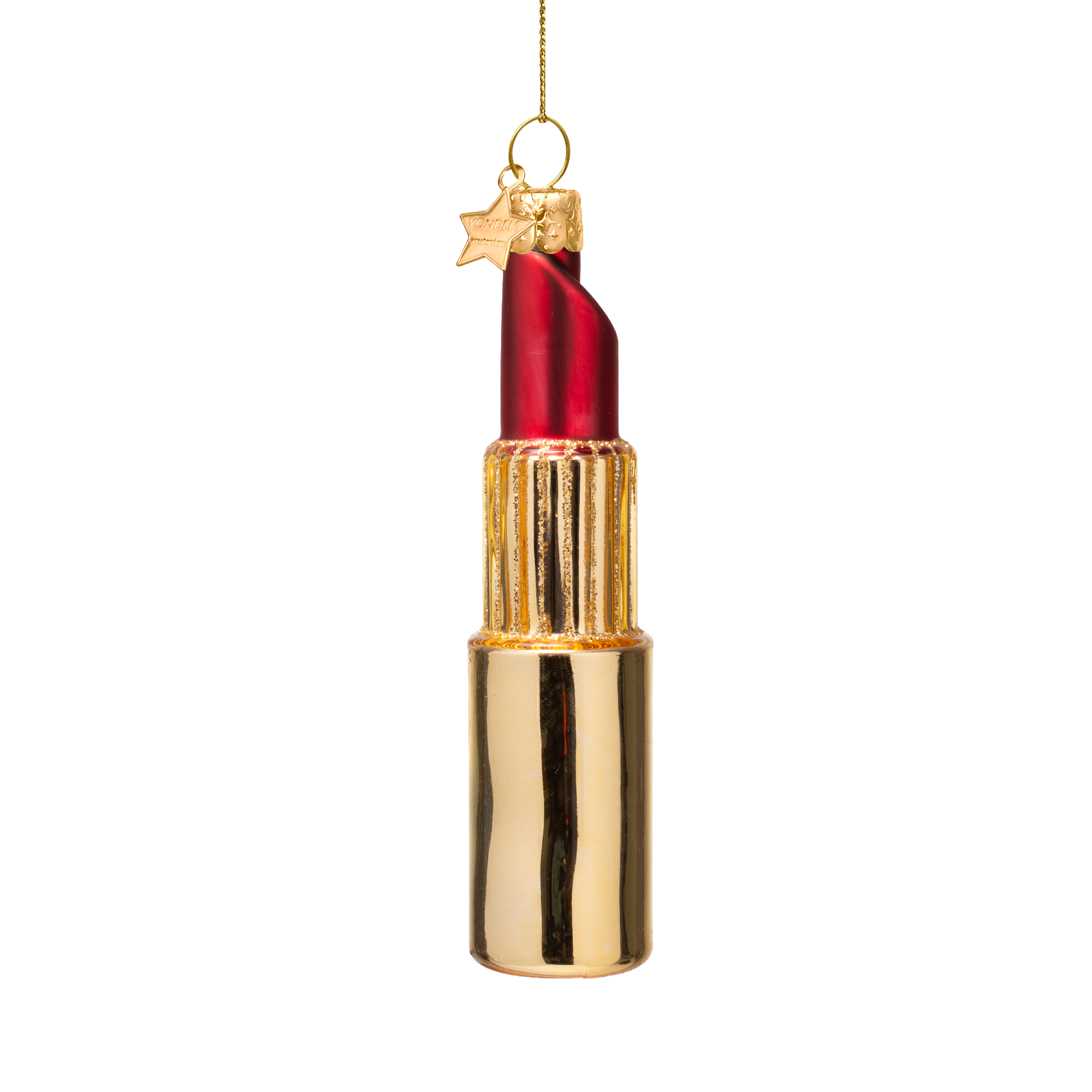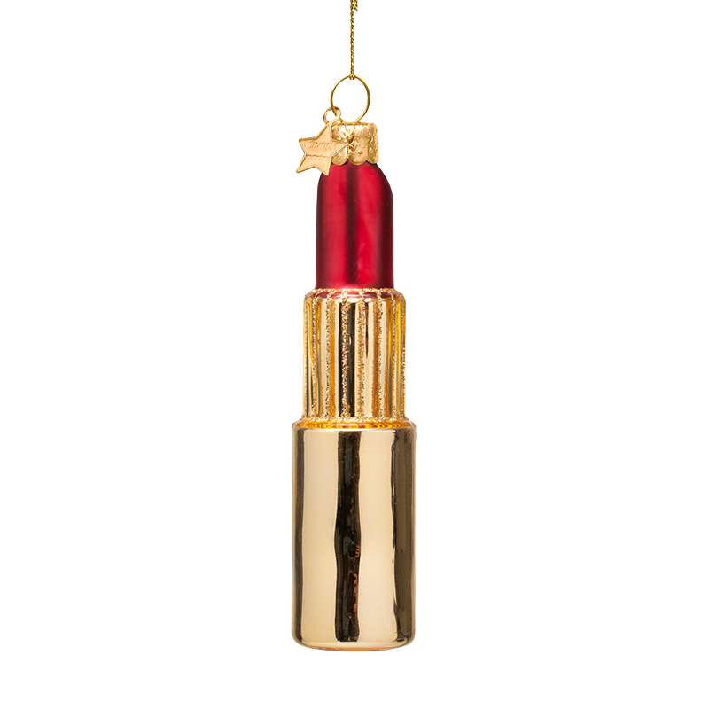Ornament glass shiny gold/ matt red pink lipstick H11cm